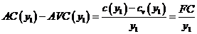 Where we note that MC must intersect AC at the minimum point of AC; also MC must intersect AVC at the minimum point of AVC. To show this, note that by definition if MC>AC then AC must rise; if MC<AC then AC must fall. The minimum point of AC is where it turns from falling to rising, where it, for at least a short (infinitesimal) time it is neither rising nor falling so MC=AC. Same argument goes for AVC.