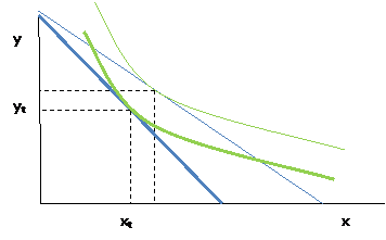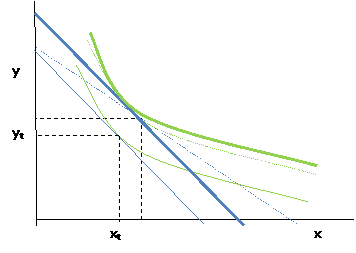 Now a tax of T on good X would result in a rise in the price of X to (P + T) and shift her budget set inward, getting her to a lower utility level: