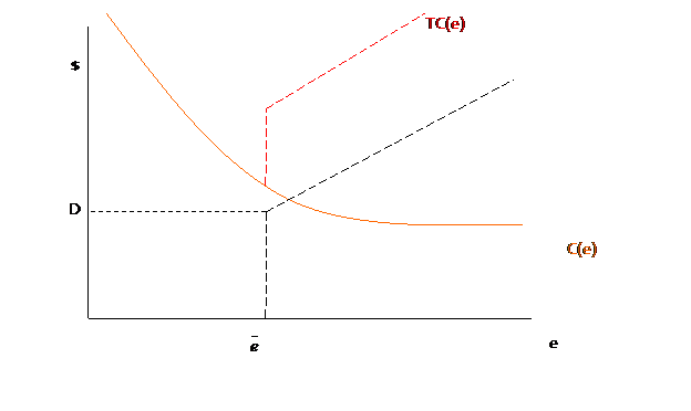 Since enforcement comes from the expected value of the fine, pf, the regulator can save on enforcement costs by reducing p while increasing the level of the penalty, and still keep the product unchanged. There are likely to be practical limits to this, of course.
