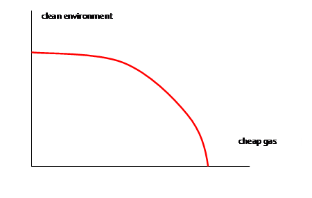 For example, politicians debate the tradeoff between cheap oil/gas (Drill Baby Drill!) and a clean environment. We can represent this tradeoff as
