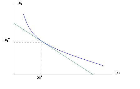 intercept of x1 shows how much x1 could be purchased if the person spent all