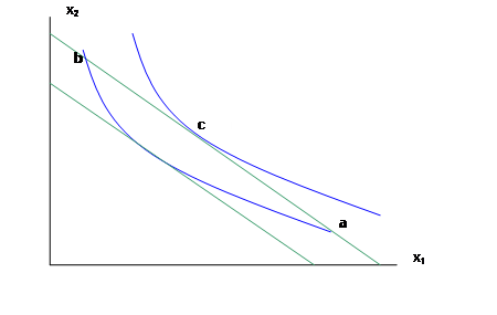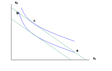 a. As income, m, rises the consumer could buy more of both; can choose any point that is between the intersections of the old indifference curve with the new budget (a and b in the figure below):