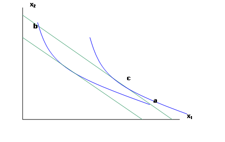 Somehow the society must figure a way to bring these two considerations of production possibilities and utility into equilibrium, to find the tangent where:
