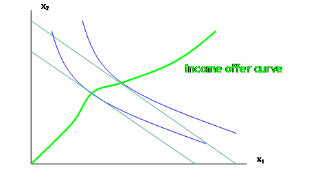 c. Graphically we can plot the income offer curve or income expansion path as showing the bundles of x1 and x2 that the consumer chooses at each level of income: