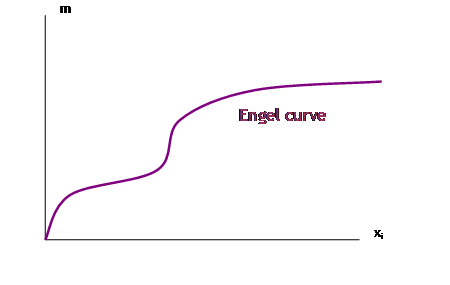 d. We also can consider the Engel curve, which is a plot of the quantity of a good, xi, and the level of income, m (with the dependent variable on the horizontal axis, just to confuse you!).