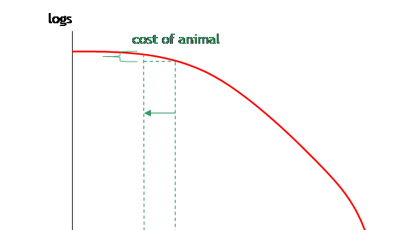 But compare this high cost with the cost (in log units) of reducing the amount of animal, if the amount of animal is already small: